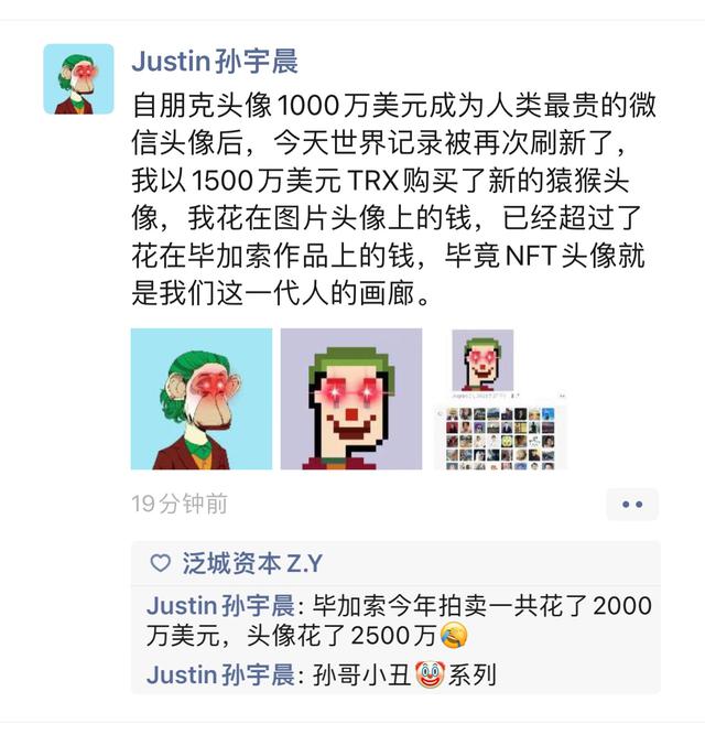 后面 NFT 概念大热,孙宇晨亲自站台,他高调创建了 APENFT 基金会并发行 NFT 平台币,拉拢 NFT 艺术家站台,花 1000 万买下一个头像,竭尽所能为 NFT 项目造势。背后,只要有人被热点所吸引,孙宇晨的交易所都能吸纳大量交易资金,获取手续费以及流动性支持。