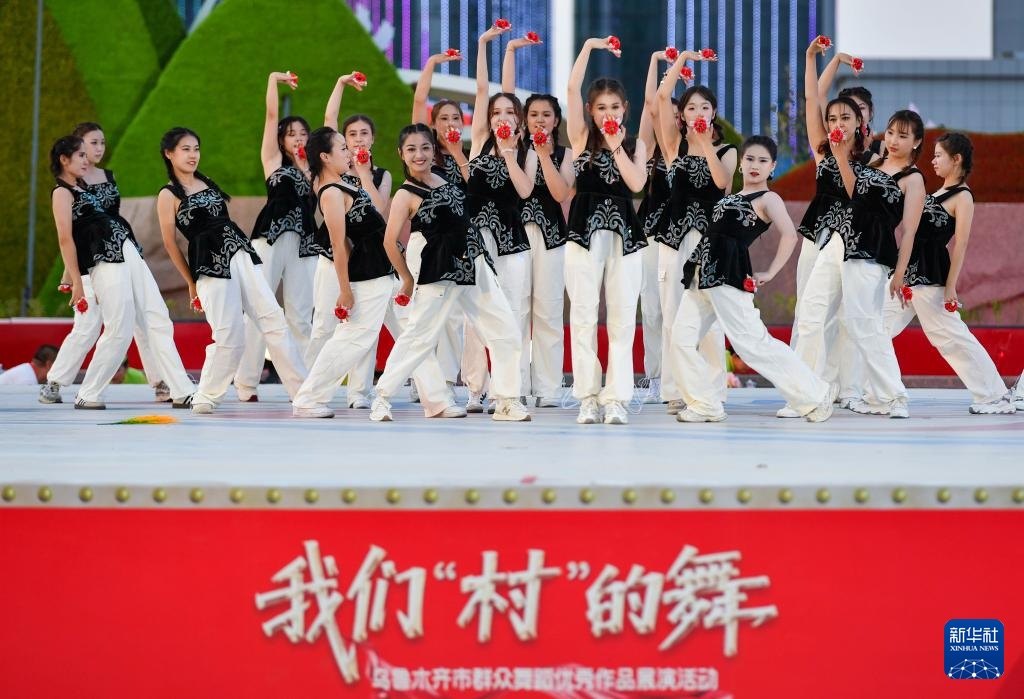 乌鲁木齐市达坂城区舞蹈队在“我们‘村’的舞”乌鲁木齐市群众舞蹈展演活动上表演舞蹈(7月28日摄)网络股票配资网。新华社记者 胡虎虎 摄